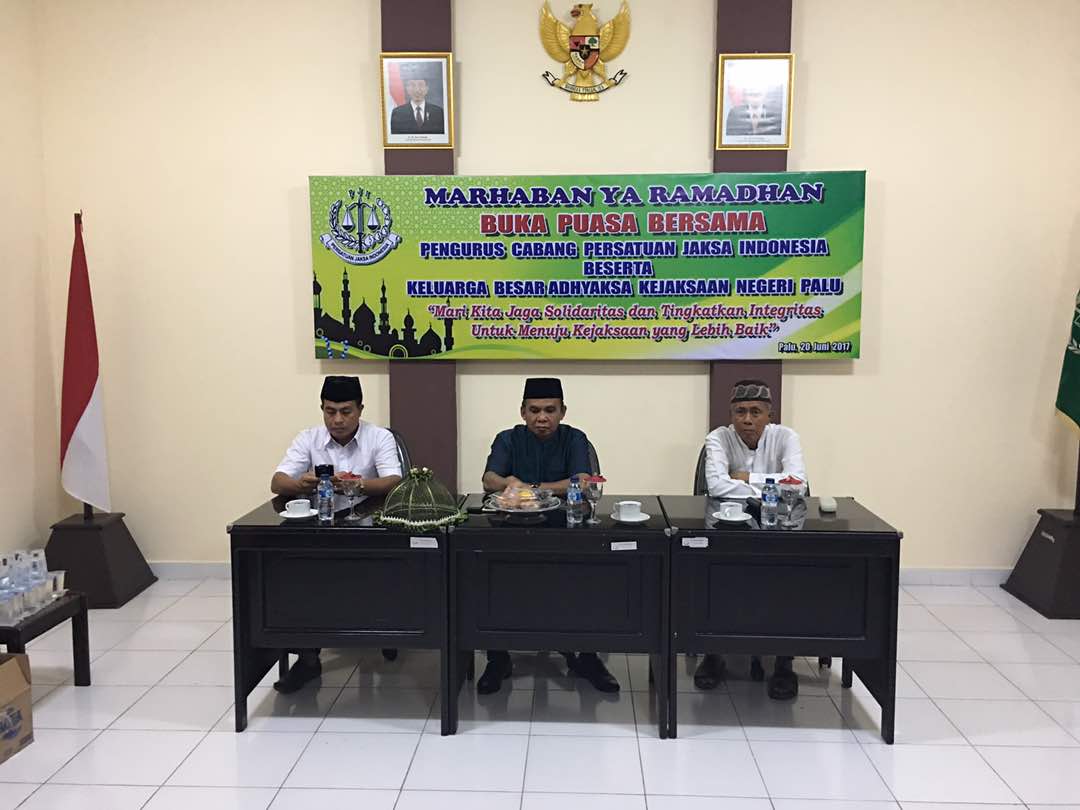 Palu –Keluarga besar Kejaksaan Negeri Palu melaksanakan buka puasa bersama bertempat di kantor Kejari Palu, Selasa, 20 Juni 2017.Nampak hadir pada acara ini, Kajari Palu Subeno SH,MM, para Kepala Seksi (Kasi), Kasubag serta seluruh pegawai Kejari Palu.Acara buka Puasa bersama ini juga di isi ceramah agama.