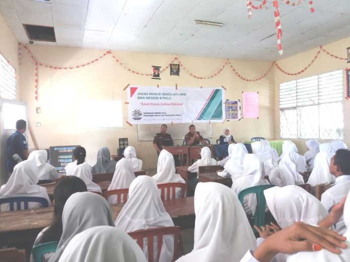 Palu –Kejaksaan Negeri (Kejari) Palu dan Dinas Kesehatan (Dinkes) Kota Palu menggelar kegiatan penerangan hukum dan penyuluhan kesehatan program Jaksa Masuk Sekolah (JMS), kemarin(19/09). Kegiatan ini dipusatkan di SMA Negeri 8 Palu Jalan Ragigau, Kelurahan Tipo, Kecamatan Ulujadi.