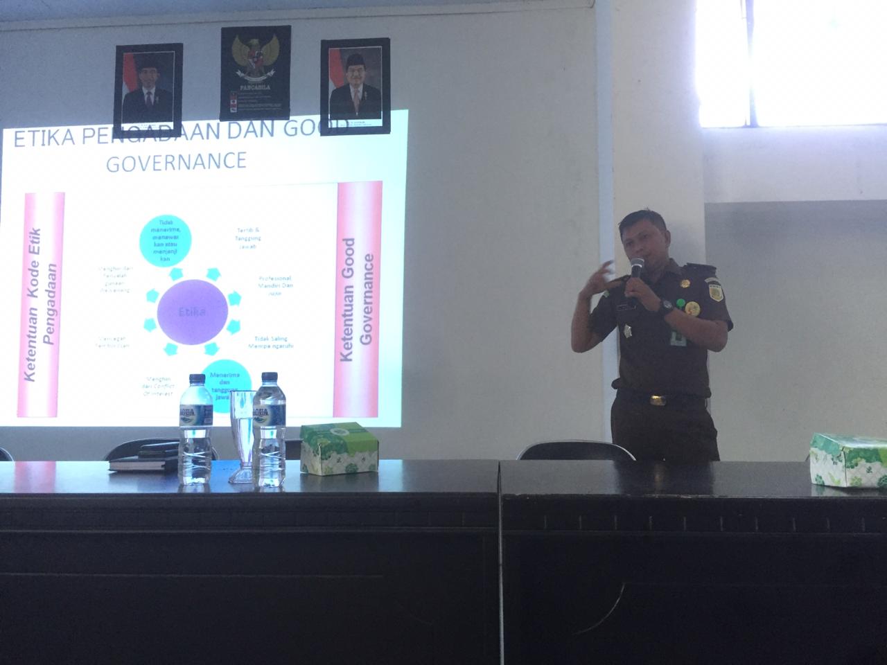 Palu – Kepala Seksi Intelijen, Agus, S.H. yang juga sebagai Ketua TP4D Kejari Palu menjadi narasumber pada kegiatan Pertemuan Bimbingan Teknis Penguatan Pengadaan Barang dan Jasa dan Keuangan Dinas Kesehatan Kota Palu bertempat di Aula Dinas Kesehatan Kota Palu(20/02/2019).