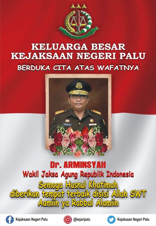 Keluarga Besar Kejaksaan Negeri Palu berduka cita yang sedalam-dalamnya atas Wafatnya Almarhum Bapak Wakil Jaksa Agung RI Dr. Arminsyah, S.H., M.Si.
