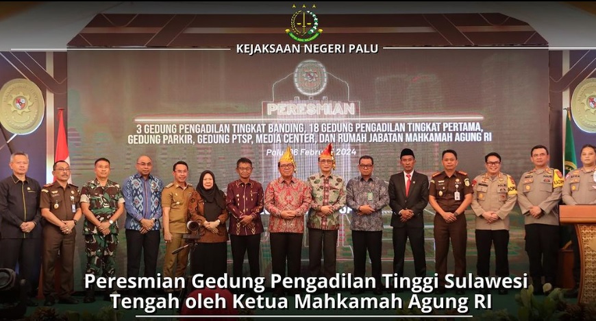 Palu – Kepala Kejaksaan Negeri Palu menghadiri Peresmian 3 Gedung Pengadilan Tingkat Banding, 18 Gedung Tingkat Pertama, Gedung Parkir, Gedung PTSP, Media Center dan Rumah Jabatan Mahkamah Agung RI (6/2/2024).