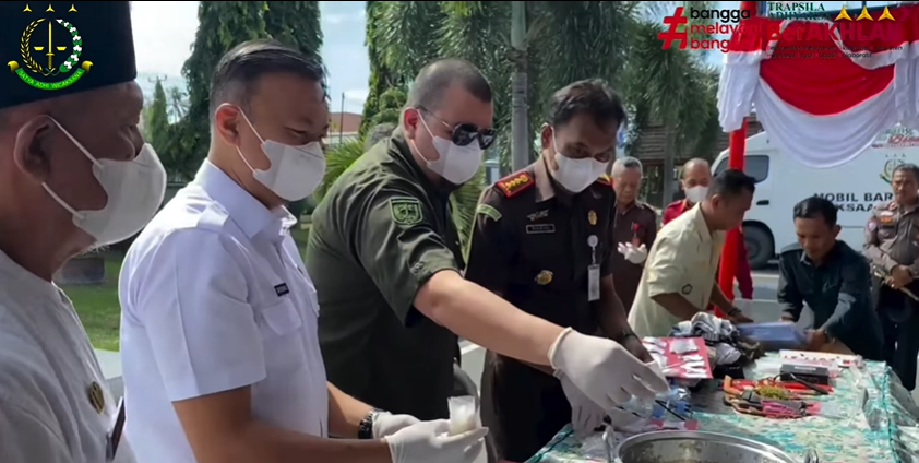 Palu – Kejaksaan Negeri Palu melaksanakan pemusnahan barang bukti perkara tindak pidana umum yang disaksikan oleh Kepala Kejaksaan Negeri Palu, Perwakilan Walikota Palu, Ketua DPRD Kota Palu, Kepala Kepolisian Resor Kota Palu, Perwakilan Dandim 1306 Kota Palu, Kepala Rutan Kelas IIA Palu, Kepala BNN Kota Palu, para Kasi dan Kasubagbin serta seluruh jaksa pada Kejaksaan Negeri Palu. Pemusnahan barang bukti tersebut dilakukan berdasarkan putusan pengadilan dan surat perintah Kepala Kejaksaan Negeri Palu nomor : PRINT-212/P.2.10/Enz.3/02/2025 tanggal 24 Februari 2025.